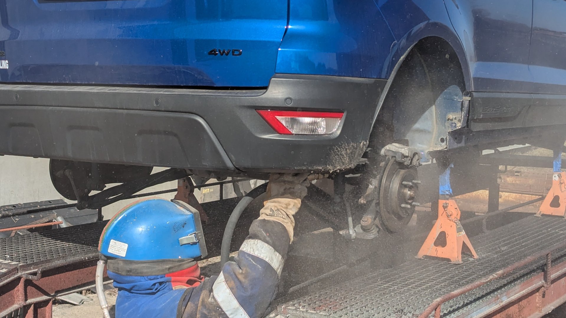 Ford EcoSport trafił do nas z początkami korozji w kilku typowych miejscach: w okolicy tylnej belki, na łączeniach blach, gdzie pojawiła się korozja szczelinowa, oraz na krawędziach progów. To klasyczny przykład skutków zbyt słabego zabezpieczenia podwozia przez producenta. Na szczęście właściciel zareagował odpowiednio wcześnie. Dzięki temu zakres prac był ograniczony, nie było konieczności rozległej odbudowy blacharskiej ani ingerencji spawacza, a całe podwozie udało się skutecznie zabezpieczyć na etapie, gdy korozja nie zdążyła jeszcze zniszczyć kluczowych elementów konstrukcyjnych.
